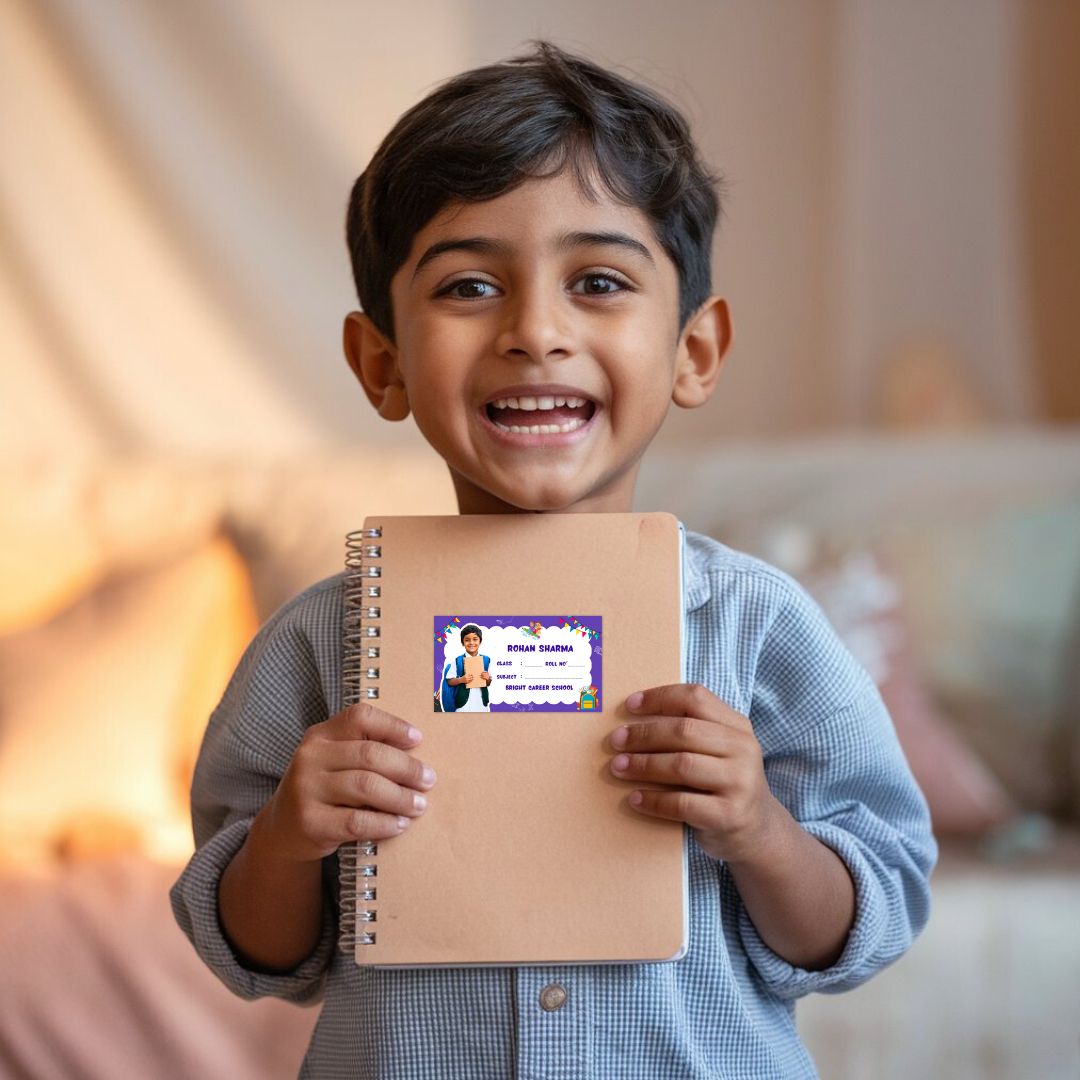 Cute & Colorful Cartoon Name Slips for Kids’ Notebooks | Fun Cartoon Designs!
