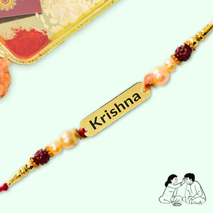 Personalized Rudraksh Metal Rakhi with Your Name | Best Rakhi Gift | CUSTOMCREST.IN